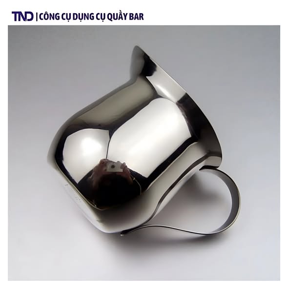 Đáy ca rộng, miệng ca rót có thiết nhọn chìa ra ngoài dễ dàng cho việc rót sữa mà không bị vẩy bẩn ra bên ngoài.