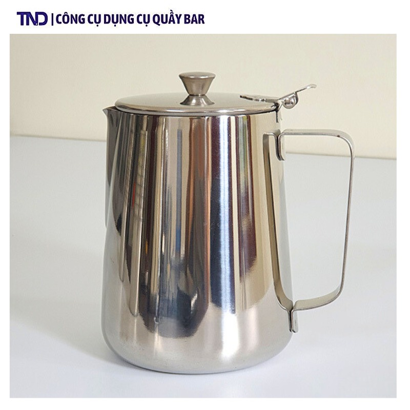 Ca inox có nắp liền với ca, tiện dụng, dễ vệ sinh. Sản phẩm dùng đánh sữa, rót trà, cafe, nước ép, đựng nước đá...dùng cho nhà hàng, cafe, quầy pha chế, quầy bar và dùng tại nhà.