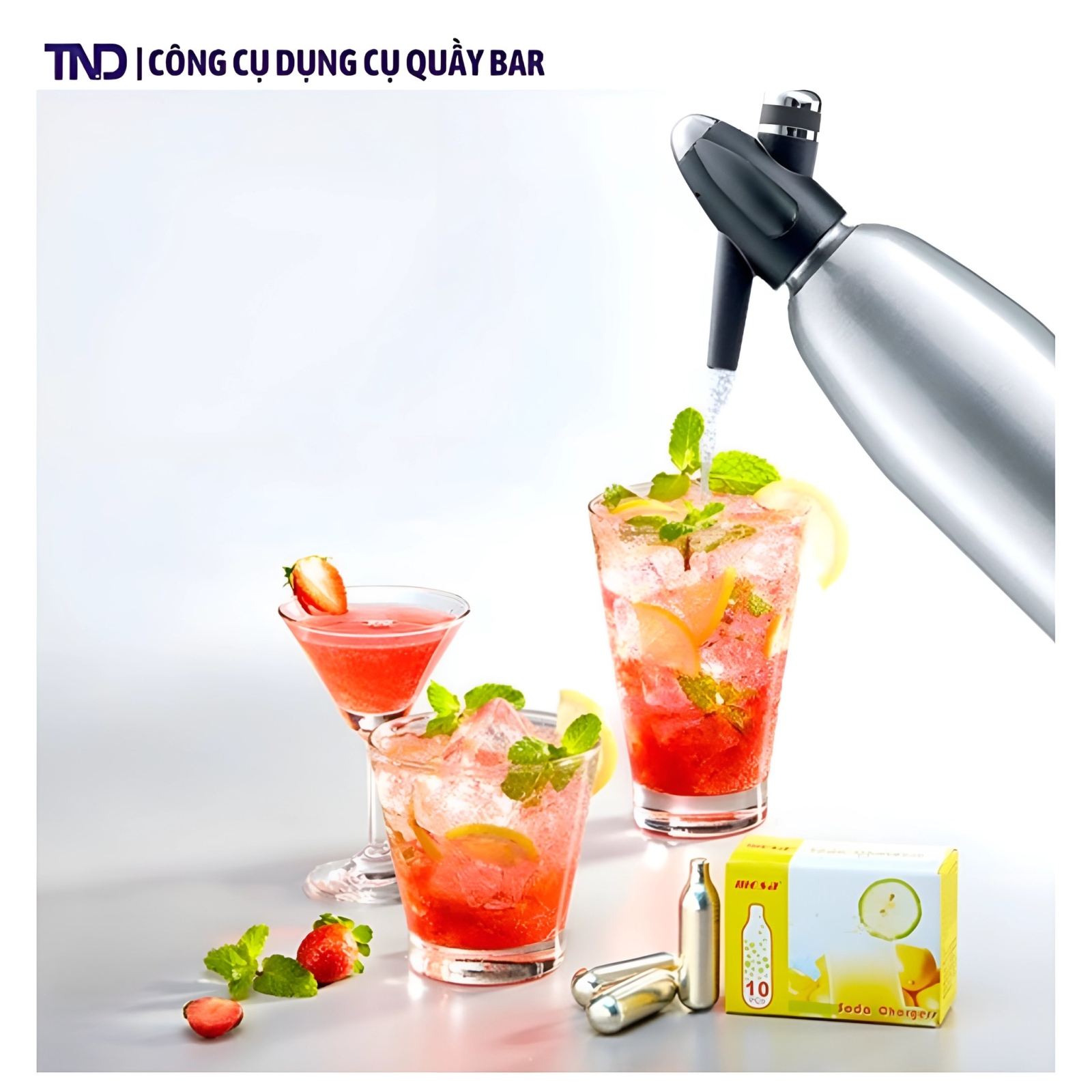 - Hướng dẫn sử dụng: Dùng tạo khí gas cho đồ uống dạng lỏng.