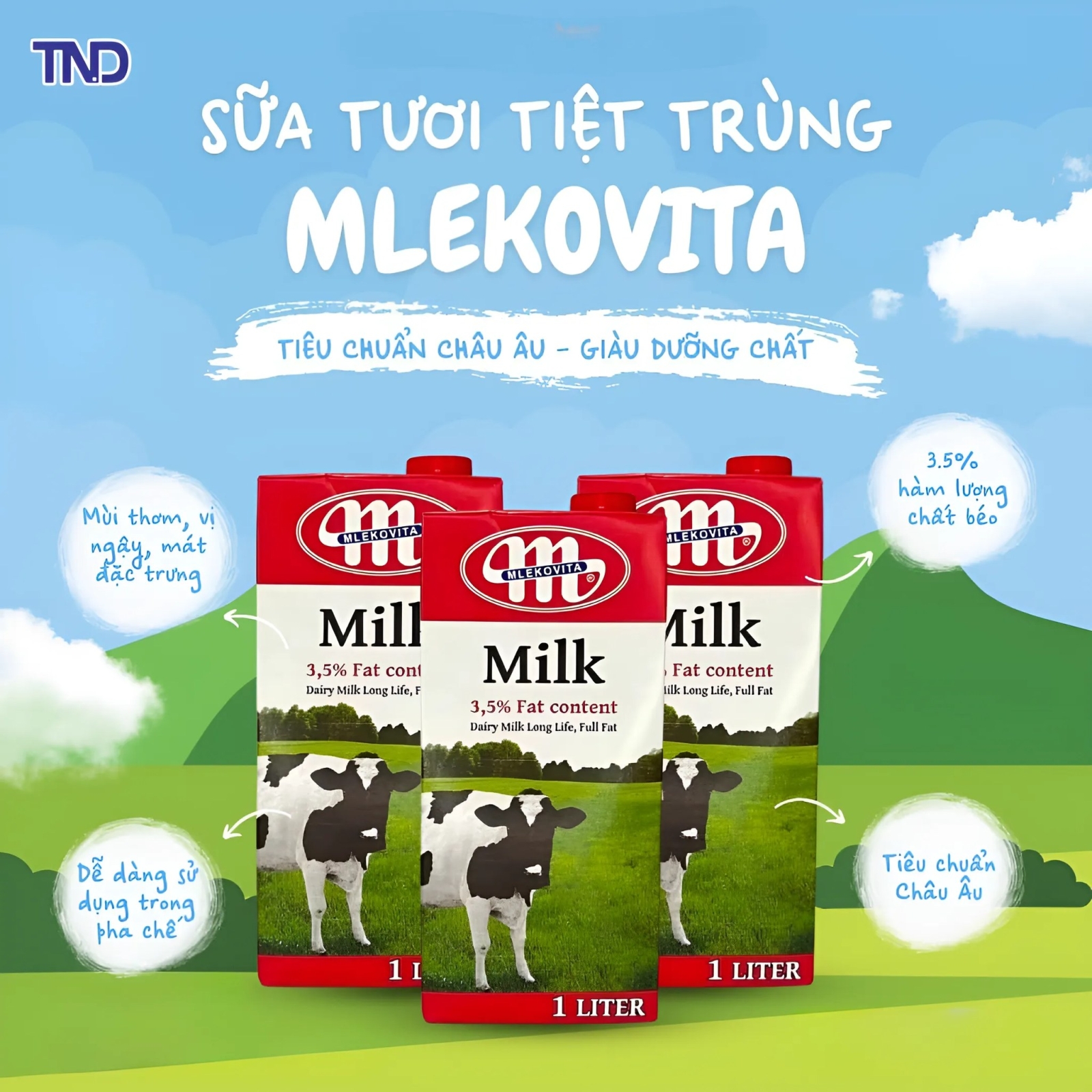 MLEKOVITA là hãng sữa của Ba Lan, được tiệt trùng bằng công nghệ UHT, có mùi thơm, vị ngậy, mát đặc trưng của sữa Châu Âu. Sữa không đường, rất tốt cho người bị tiểu đường hoặc đang ăn kiêng.